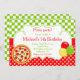 Une pizza Anniversaire Invitation pour cette occasion spéciale. L'arrière - plan est des dames vertes et des pois rouges. Les mots peuvent être changés en vos propres détails OEuvre d'art par JW Illustrations et MyClipArtStore