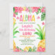 Ananas Floral rose Aloha Luau Invitation Anniversaire Colorful aloha luau invitation à la fête d'anniversaire avec quelques fleurs d'hibiscus rose et jaune, feuillage tropical et ananas. Ceci