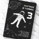 Invitation Anniversaire de l'astronaute moderne noir et blanc