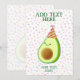 Cute avocado avec casquette d'anniversaire. Cartes d'invitation pour les fêtes d'enfants. Modifier le texte pour customiser.