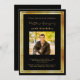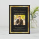 Une invitation d'anniversaire élégante, moderne et simple. Un arrière - plan noir décoré de faux cadres dorés. Personnalisez et ajoutez un nom photo et des détails. Texte doré.