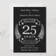 Un design pour célébrer 25 ans de mariage. Ce design présente un motif de laurier de couleur argent (gris) sur fond noir. L'argent est le cadeau traditionnel pour cette occasion. Le texte indique Anniversaire de 25 ans d'argent. Un design romantique pour célébrer vos 25 ans de mariage. Si vous avez besoin d'aide pour personnaliser ce design, veuillez me contacter en utilisant le bouton 'Demander au designer' situé juste en dessous de ce texte.