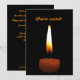 Envoyez cette invitation élégante pour un événement très spécial, ou juste une fête amusante. Elle comporte une photographie simple de nature morte d'une bougie marron avec une belle flamme aux nuances de blanc, jaune, or et orange. Elle est posée sur un fond noir pur. Une autre bougie est sur le dos avec toutes les informations importantes. Le texte est formulé pour un anniversaire de mariage mais peut être facilement modifié pour s'adapter à votre célébration unique.