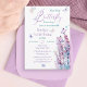 Cette invitation incarne une tendresse, une élégance et une délicatesse extraordinaires. Il présente une aquarelle représentant un buisson lavande, capturant magnifiquement son essence. Ajoutant à son charme, des papillons délicats aux tons mauve, bleu et rose doux ornent gracieusement le design. L'invitation est complétée par une police élégante qui se fond harmonieusement avec cette composition légère et raffinée.
