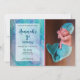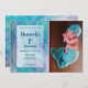 En comportant une queue de sirène modelez et des couleurs océaniques. Vibrant et beau. Personnalisez cette carte plate d'invitation d'anniversaire avec le nom de votre bébé, la photo, le lieu de rendez-vous d'événement, la date, le temps, et votre information de RSVP.