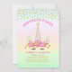 Belle licorne, fleurs et doré look métallique confetti sur tons pastel Carte d'invitation Anniversaire. Tout le texte prêt à être personnalisé.