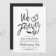 Un script amusant et unique a écrit une invitation spécialement adaptée à une fête d'anniversaire ou à un renouvellement de voeux mariage. Il contient les mots "We Forever do" avec des anneaux mariages qui se reposent au-dessus. En dessous de cette page Il y a de l'espace pour vos détails uniques de fête ou d'événement.