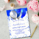 Un arrière - plan blanc. Décoré avec la fausse parties scintillant bleue royale gouttes de peinture goutte à goutte, scintille. Ballons Royal bleu et faux argent. Personnalisez et ajoutez un nom et des détails du parti. Le nom est écrit avec un script de style écrit à la main.