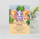Plongez dans le monde des dinosaures à notre Dino Delight party ! Rejoignez-nous pour une aventure dans la célébration du [Nom de l'enfant] tournant [âge]. L'adorable décoration est composée de trois mignons dinosaures entourés de palmiers, ce qui ouvre la voie à un bon moment. Personnalisez facilement les détails comme le nom, l'âge, la date et l'adresse pour une touche unique. Les couleurs vives et l'atmosphère ludique font de cette invitation une invitation parfaite pour le grand jour de votre petit. Ne manquez pas la joie jurassique - commandez maintenant et laissez la palooza de la fête préhistorique commencer!