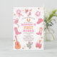 Pink Orange Retro 1st Rodeo Birthday Invitation Girls retro style rodéo invitation de premier anniversaire avec boule disco, bottes cowgirl, scull, cactus et plus. L'invitation à l'anniversaire du premier rodéo rose et orange de cette fille est idéale pour quelqu'un à la recherche d'un style moderne.