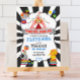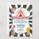Invitation d'anniversaire à thème de carnaval noir et blanc avec des détails colorés de ce que vous voyez dans un carnaval.