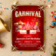 L'invitation est inspirée par le design vintage en ayant une bordure en bronze clair unique pour compléter l'arrière - plan motif du carnaval rouge. Chaque élément du Carnaval, comme la tente, le carrousel et la grande roue, est numériquement dessiné.
