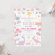 Cette adorable invitation à l'anniversaire présente des dinosaures dessinés à la main, des arcs-en-ciel et des feuilles aux couleurs pastel.