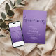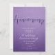 Une façon audacieuse et belle de célébrer l'amour. Cette élégante invitation à l'anniversaire de mariage présente un riche arrière - plan à dégradé violet avec un script imprimé de style métallique "Anniversaire" et une typographie sophistiquée. Parfait pour marquer un jalon spécial, de l'argent aux anniversaires d'or ou les renouvellements de voeux. Entièrement personnalisable avec vos noms, date et détails de fête. (Remarque : l'effet métallique est imprimé, pas le papier d'aluminium.)