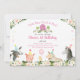 Cette mignonne invitation à l'anniversaire comprend des animaux de ferme aquarellés aux accents floraux roses, des confettis et une bordure en vichy rose.