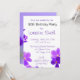 Purple Floral Birthday Invitation est personnalisable devant la carte. Fleurs violettes foncées sur arrière - plan de couleur claire. Cette invitation est un design adapté à toute personne qui aime les fleurs ou apprécie leur beauté, comme un ami, un membre de la famille, ou un autre significatif. Joli ajout à votre fête d'anniversaire.