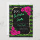 Elégante parties scintillant à rayures vertes et noires et roses roses roses à la fête d'anniversaire pour les femmes de tout âge. L'âge peut être modifié pour n'importe quel âge. Le texte peut être changé en n'importe quoi pour s'adapter à votre événement. Les polices, la couleur de police et le texte sont entièrement personnalisables ! La forme et le type de papier peuvent être customisés pour correspondre à votre budget et à votre goût!