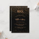 Une invitation moderne, élégante et raffinée. Un arrière - plan noir décoré de confettis dorés. Personnalisez et ajoutez l'année de naissance, le nom et les détails.