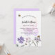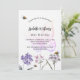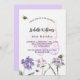 Un arrière - plan blanc à l'avant. Décoré d'abeilles et de fleurs sauvages peints en violet et rose et d'un grand papillon. Personnalisez et ajoutez un nom et des détails du parti. Retour : arrière - plan violet.
