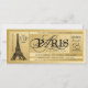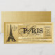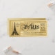 Invitation d'anniversaire Paris avec une belle Tour Eiffel et écriture Paris sur un fond de style billet de boarding pass. Vous pouvez ajouter du texte dans la zone de la Tour Eiffel et modifier la couleur du fond et du texte. Cette invitation d'anniversaire Paris élégante en noir et or est facilement personnalisable pour votre événement en ajoutant simplement vos détails. Il s'agit d'une conception imprimée sans véritable feuille.