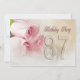 Une belle image délicate d'un rose dans les tons roses doux. Une délicieuse invitation à la fête d'anniversaire. Remplacer par les détails de votre propre fête