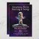 Invitation à thème pour l'espace extra-atmosphérique violet et rose. Idéal pour la fête des filles.
