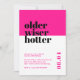Célébrez vos 30 ans de style avec notre invitation audacieuse et branchée à 30e anniversaire "Plus vieux, plus sage, plus chaud". Ce design minimaliste accrocheur vous propose un arrière - plan rose vif qui ajoute une touche de sophistication à votre célébration de jalon. Notre invitation minutieusement conçue saisit l'essence de l'entrée dans une nouvelle décennie avec confiance et grâce. La typographie propre et moderne donne un sentiment de maturité, tandis que la couleur rose vif ajoute une touche amusante et jeune. Que vous soyez l'hôte d'une fête somptueuse ou que vous planifiez une réunion intime, cette invitation donne le ton parfait pour un événement inoubliable.