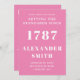 Célébrez votre journée spéciale avec ces invitations d'anniversaire personnalisées! Nos invitations personnalisés en rose et blanc présentent un design élégant, ainsi que votre nom et vos informations de fête. Avec un beau choix de police et de couleur vous pouvez créer le look parfait pour votre occasion spéciale. Préparez-vous à faire une impression durable avec nos invitations d'anniversaire élégantes et uniques!