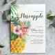 Cette belle invitation présente les couleurs magnifiques de l'ananas et des fleurs tropicales colorées.