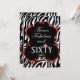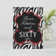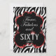 © Socialite Designs. Célébrez votre 60ème anniversaire avec ce carton d'invitation au motif zèbre impertinent et chic, liseré de scintillements rouges et texte 60 pailleté. Un design personnalisé par Socialite Designs.