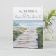 Invitation de mariage et de réception sur la plage de Nouvelle-Angleterre pour le couple qui s'est enfui et s'est marié sur une plage de Nouvelle-Angleterre. Le recto indique - Tout ce dont nous avons besoin, c'est d'amour et de la plage. Ajoutez vos détails de mariage et de réception au verso et invitez famille et amis à célébrer avec vous.