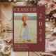 Carte d'annonce de photo de remise de diplôme moderne marron/bourgogne avec typographie dorée personnalisée avec 2 photos, une sur le devant et une sur le dos. Ajoutez votre touche personnelle au dos en écrivant votre annonce partageant les détails des années de votre enfant au lycée et/ou leurs plans pour l'avenir.
