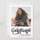 L'annonce de remise de diplôme minimaliste et simple commence avec votre photo. Diplômé est écrit dans une typographie tendance et grasse. Cette annonce de remise de diplôme fournit la promotion 2023, votre nom et votre école sur le devant. Il y a une deuxième photographie au dos et un texte personnalisé où vous pouvez décrire les réalisations et les projets futurs du diplômé.