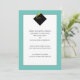 Annonces de remise de diplôme classiques pour la promotion 2025 avec une élégante toque noire et un pompon doré sur fond bleu sarcelle.