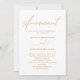 Cet avis d'annulation de mariage de couleur or et blanc moderne présente une élégante écriture calligraphique en or faux et informe les invités que la cérémonie a été annulée en raison d'événements imprévus, et que vous les contacterez lorsqu'elle aura été reprogrammée.