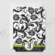 Vintage Moderne Noir et Blanc Motifs de Damas Floral avec Apple Green Trim Wedding Invitations. Parfait pour Rococo Baroque, Renaissance médiévale, Art Déco Art Nouveau, Roaring 20s Gatsby, Mariages victoriens ou Elégant Farmhouse Mariage lieux thématiques.