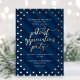 Les rayures traditionnelles sont accentuées par des points fantaisistes en faux or sur cette invitation de fête de vacances avec un script de calligraphie amusant.
