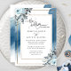 Réception ou fête élégante après le faire-part de mariage avec de l'aquarelle bleue coulant et d'exquises fleurs d'aquarelle peintes à la main et bouquets de coin feuillu dans les tons bleu, bleu marine, blanc, sauge, gris et caramel. e (c'est-à-dire avec une grande joie et excitation...). Capacité de modifier le texte en fonction de vos besoins. Dos de la carte avec la même tache d'aquarelle bleue délicate et fluide. Une partie de notre collection de mariages et d'événements "Rustic Blue Mountains".