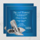 Elegant blanc et bleu parties scintillant haute chaussures talon femme de 30e 40e 50e 60e 70e 75e anniversaire invitations de fête. Cette élégante invitation à la fête d'anniversaire blanche et bleu aqua est facilement customisée pour votre fête ou événement en ajoutant les détails de votre événement, le style de police, la taille et la couleur de police et le libellé.