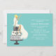 Des invitations amusantes et chic illustrent bien une mariée heureuse assise sur un gâteau mariage. Conception parfaite pour les douches nuptiales, les soirées bachelorette, etc.