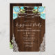 Aqua Mint Rustic String éclaire l'invitation des Fiançailles floraux. Ce design est orné d'un arrière - plan rustique en bois avec des fleurs vert d'aqua et de menthe agrémentées de dentelles et de lampes à cordes scintillantes. Parfait pour une fête d'hiver ou de printemps.