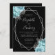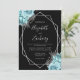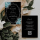 Invitation Aqua Silver Floral Black QR Code Wedding
