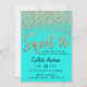 Invitation Aqua Turquoise or à Parties scintillant dispersée