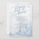 Invitation du dîner | Aquarelle peinte à la main d'arbres d'hiver enneigés sur un arrière - plan de lavage à l'aquarelle en bleu d'hiver, encadrée par un dégradé argenté et bleu mince cadre. Calligraphie de style moderne "Let it Snow" et police contemporaine moderne pour les détails de l'invitation. Simple, élégant et unique. Ceci est une autre aquarelle originale de ©WhimsicalArtwork™ et maintenant offert dans une collection de Noël "Aquarelles d'hiver".