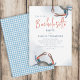 Ce design comprend une soirée bachelorette crabe bleu aquarelle, un week-end de mariée crabe nautique, avec une nappe en vichy bleu motif un thème marin côtier vivant en bord de mer, dîner de fruits de mer invitation, avec texte de police de typographie branché, une typographie de script de calligraphie moderne, une côte Maryland nouvelle Angleterre Maine, une bachelorette crabe blanche, une simple vague d'eau bleue de l'océan