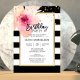 Invitation Aquarelle blanche noire rose Floral fête d'anniver