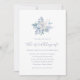 Belle faire-part de mariage fleurie bleu poussiéreux et aérée, élégante script de calligraphie et jolie aquarelle bleue turquoise de style vintage sur un front blanc classique. Le dos est chic pastel bleu poudreuse.