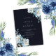 Invitation Aquarelle Bleu foncé Hiver Floral Mariage