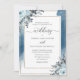 Elégante invitation de mariage avec une aquarelle bleue tache fleurie, bouquets d'angle exquis et cadres dorés encadrant vos détails mariages. Fleurs d'aquarelle peintes à la main et feuillage dans des tons bleu roux, bleu marine, blanc, sauge, gris et caramel. Dos de la carte avec la même tache d'aquarelle bleue délicate et fleurie. Une partie de notre collection "Rustic Blue Mountains" mariage et événements avec une variété de produits de coordination disponibles. Visitez la collection entière à l'adresse suivante : https://www.zazzle.com/collections/rustic_blue_mountains_wedding_and_event_collection-119893780903977429