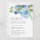 Invités Invitations à votre événement avec cette invitation à la douche nuptiale florale personnalisable. il dispose d'aquarelle bouquet d'hydrangées bleues, roses blanches et accents de verdure. Personnalisez cette invitation de douche nuptiale hydrangea en ajoutant le nom, l'heure, la date et d'autres détails de l'événement. Cette invitation botanique à la douche de nuptiale est parfaite pour les douches de nuptiale printanière et les douches de nuptiale hivernales. D'autres stocks de cartes sont disponibles.